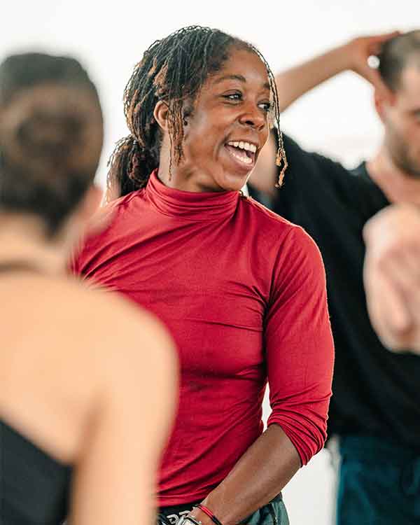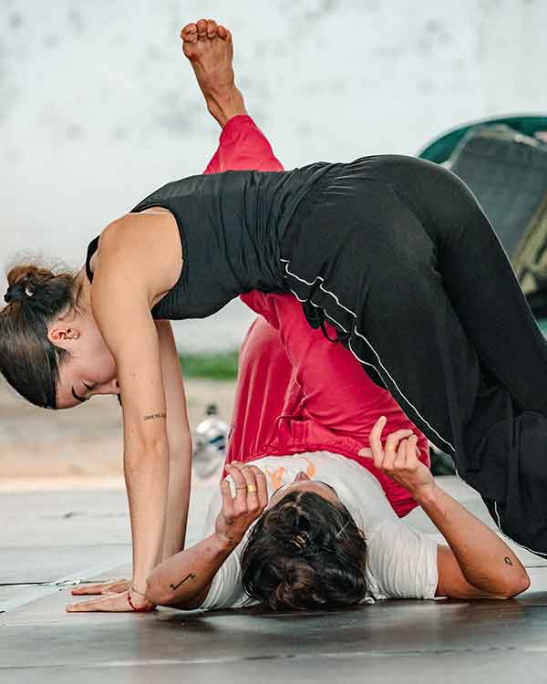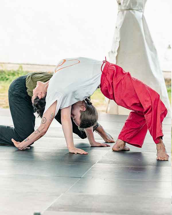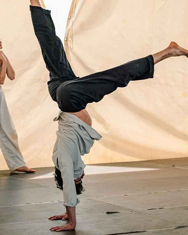 El taller de Tarek Rammo combina danza, acrobacias de suelo y trabajo en pareja con herramientas compositivas. Muestra cómo integrar movimientos acrobáticos en el flujo de la danza utilizando un enfoque improvisado. Los participantes experimentan cómo jugar con la dirección, el peso, la tensión y la articulación mientras realizan movimientos acrobáticos para sentir una sensación de libertad y dar intención y significado a los movimientos. Tarek guía a los bailarines y acróbatas para que se involucren plenamente en su propia exploración del movimiento mientras participan activamente en el contexto de una composición general.